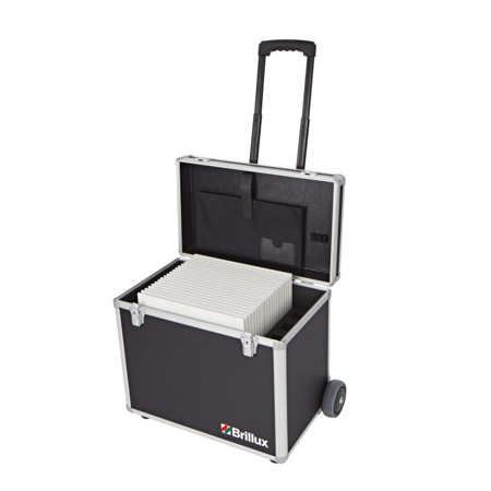 Präsentationskoffer mit 20 beidseitig beschichtbaren Musterplatten sowie Einschubfächer für alle Farbtonkarten und Broschüren aus dem Bereich Creativ