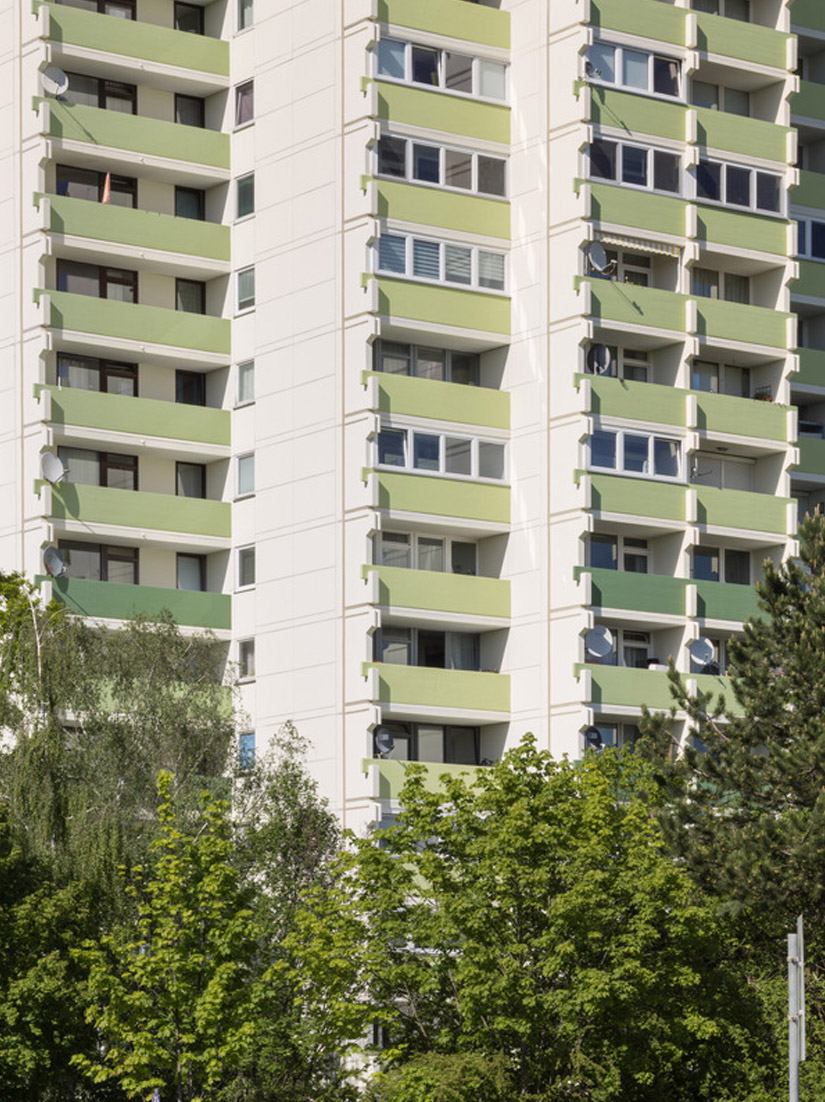 Doch man kann bestehende Hochhäuser auch so sanieren, dass sich seine Bewohnerinnen und Bewohner darin wieder wohlfühlen. Und dass auch der Betrachter von außen ein harmonisches, symmetrisches Gesamtbild sieht.