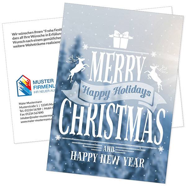 Weihnachtspostkarte mit vielen verschiedenen Bildmotiven und frei editierbaren Texten.