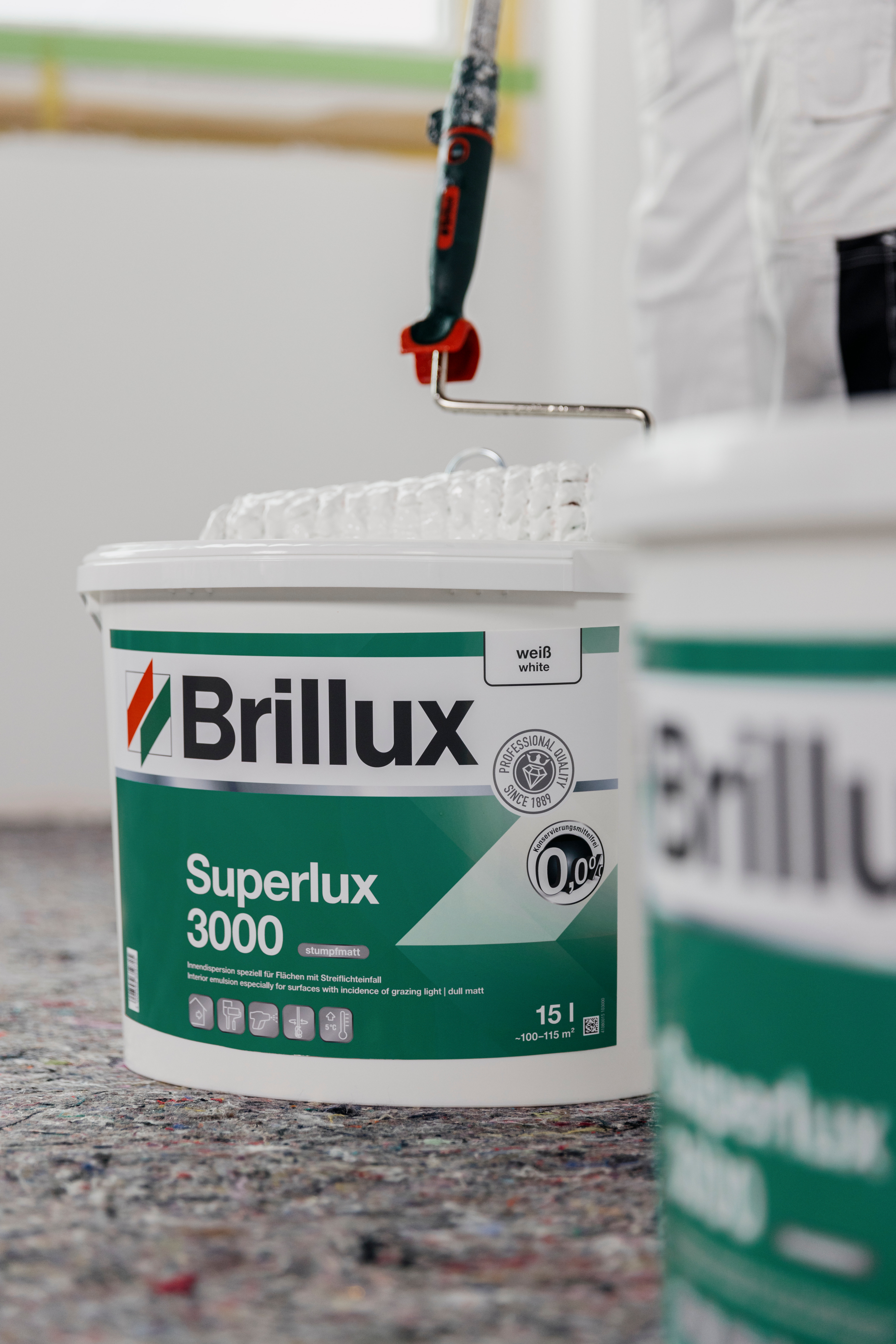 Mit der neuen konservierungsmittelfreien Rezeptur macht Brillux keinerlei Abstriche bei weiteren Eigenschaften. Sowohl die Deckkraft als auch die Nassabriebbeständigkeit bleiben unvermindert auf einem hohen Niveau. Das Produkt lässt sich weiterhin im Streich-, Roll- oder nebelarmen Airlessverfahren verarbeiten. Dabei bleibt die gestalterische Freiheit erhalten. Auch in der konservierungsmittelfreien Einstellung ist die Wandfarbe in jedem Wunschton über das Brillux Farbsystem verfügbar – und das in jeder der mehr als 190 Niederlassungen.