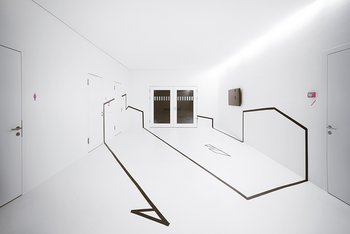 Die Architekten von Planconzept, selbst auch Bauherren, wünschten sich das "schwärzeste Schwarz" für ihren Eingriff, der einerseits brachial die Struktur des alten Hauses durchbricht und andererseits auf elegante Weise altes Bauwerk mit neuer Funktion verbindet. Die Lösung hieß: 2K-Aqua Mattlack 2390 im Scala-Farbton 99.00.69 (RAL 9005 Tiefschwarz). Mit der geschlossenen, als Geländer fungierenden Metallumfassung, der Spindel und der Treppenuntersicht waren insgesamt 45 Quadratmeter zu lackieren.